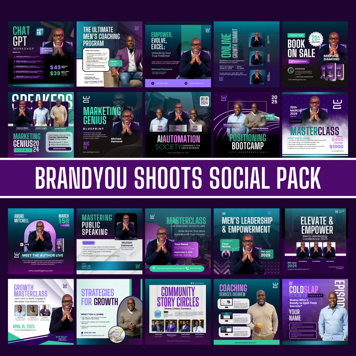 Social Media Graphics – 20 customizable Canva templates with editable text, your choice of brand colors and your BrandYou Shoots photos.